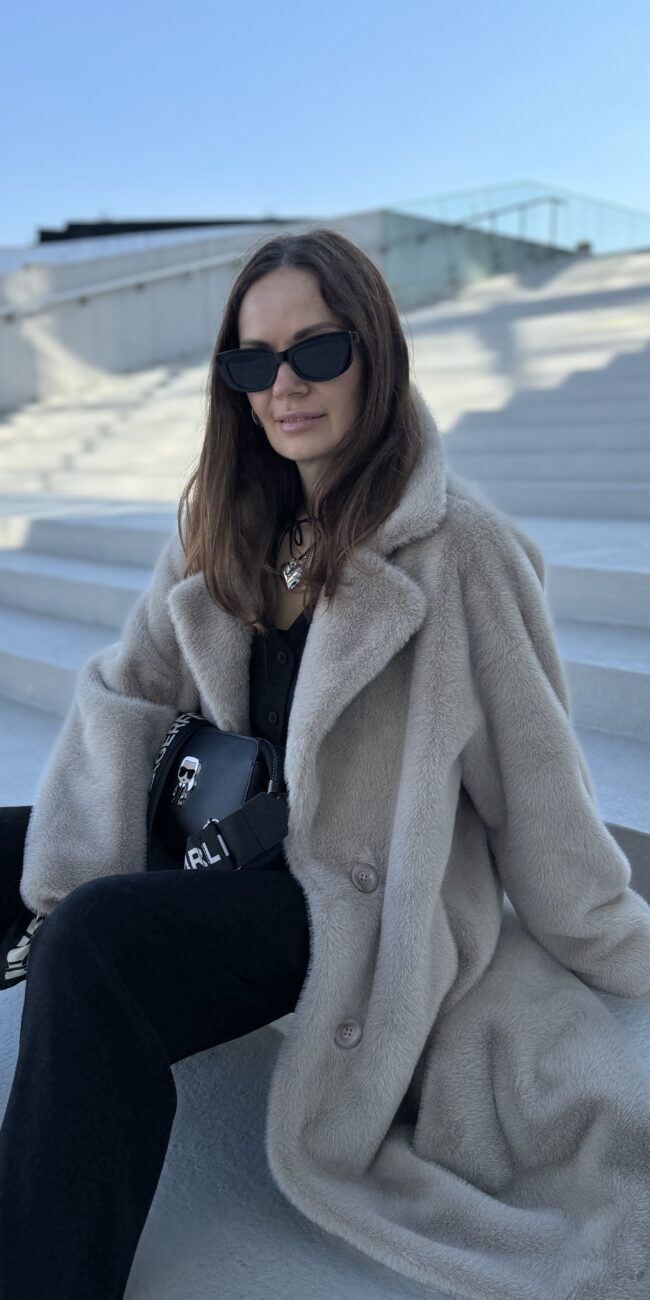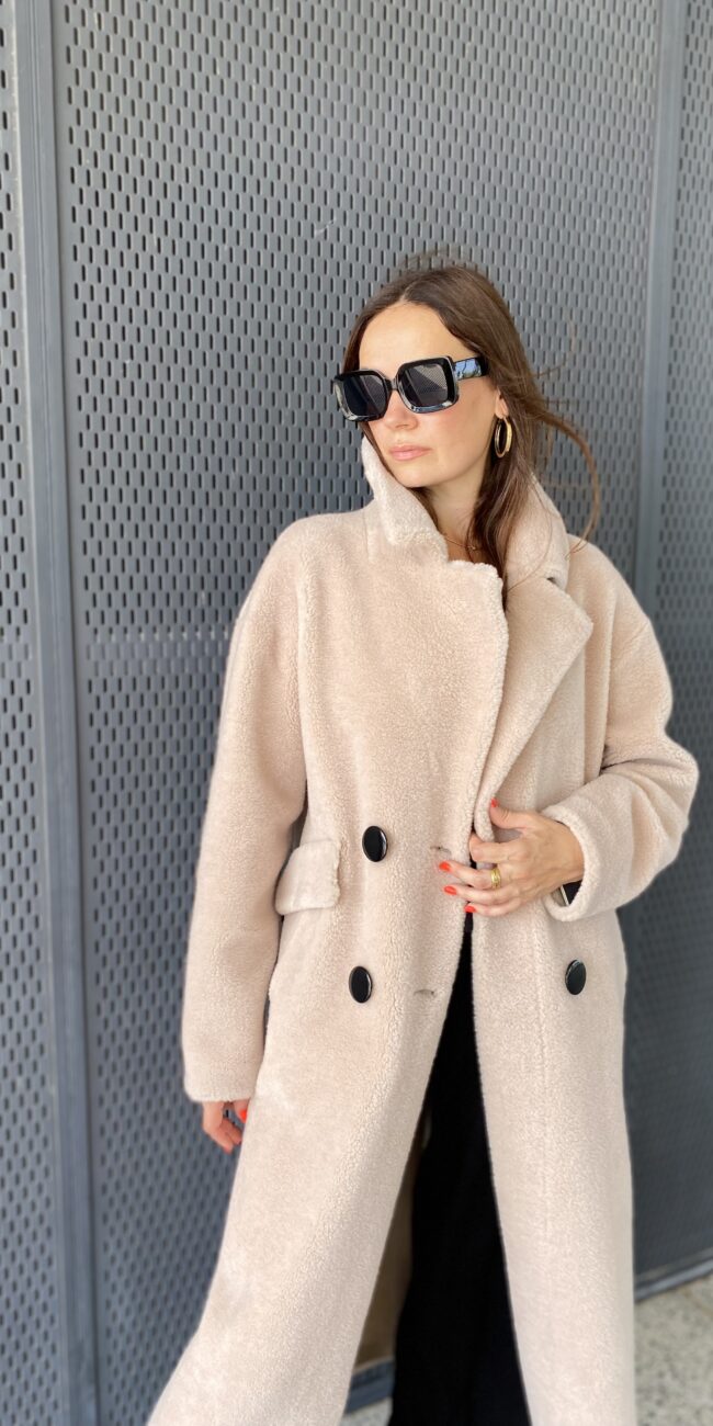 Пальто женское экомех, фактура норка, Модель 3732, цвет Паломино