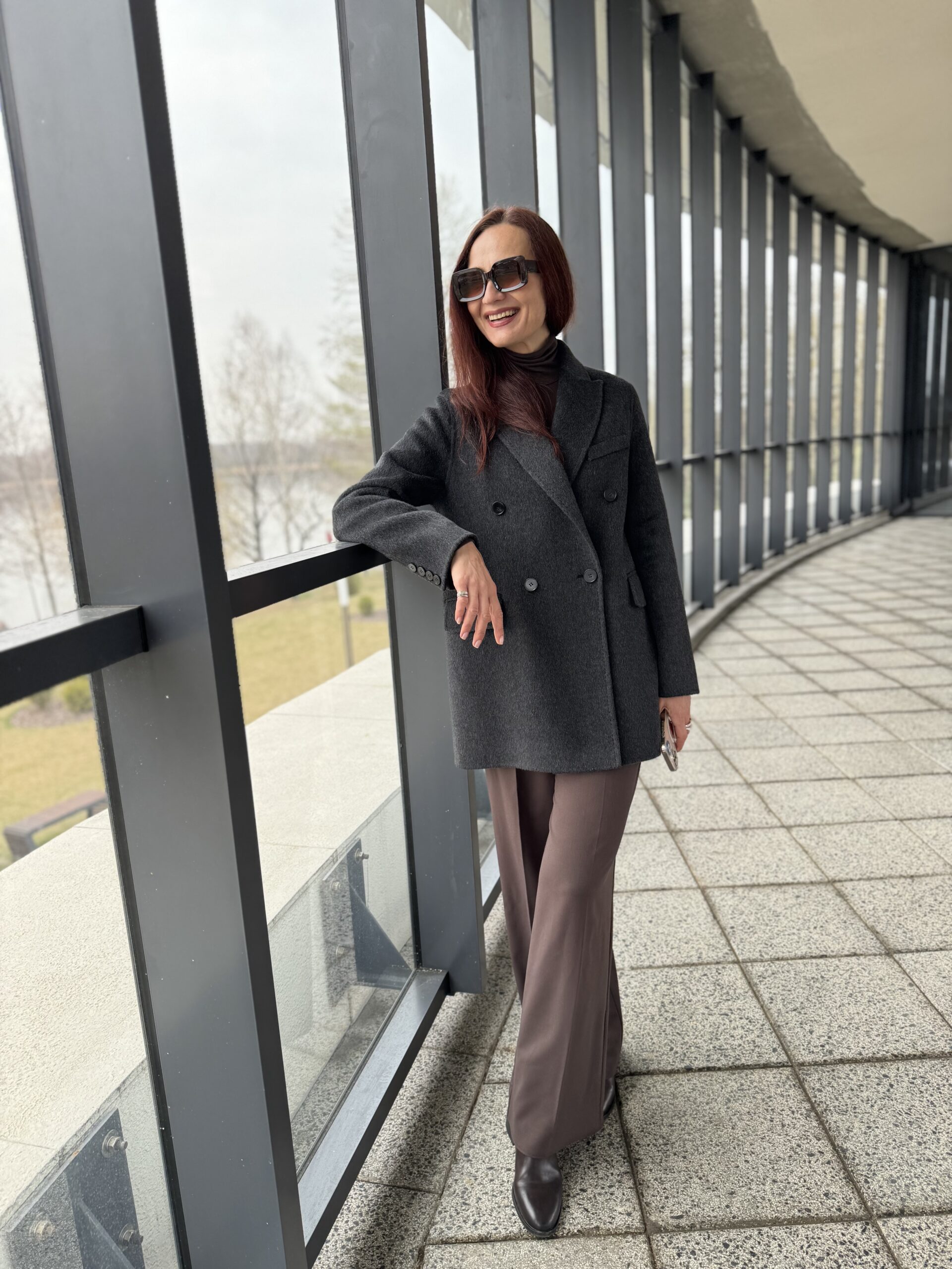 Пальто женское из шерсти и кашемира, Модель 2021, цвет Шоколад