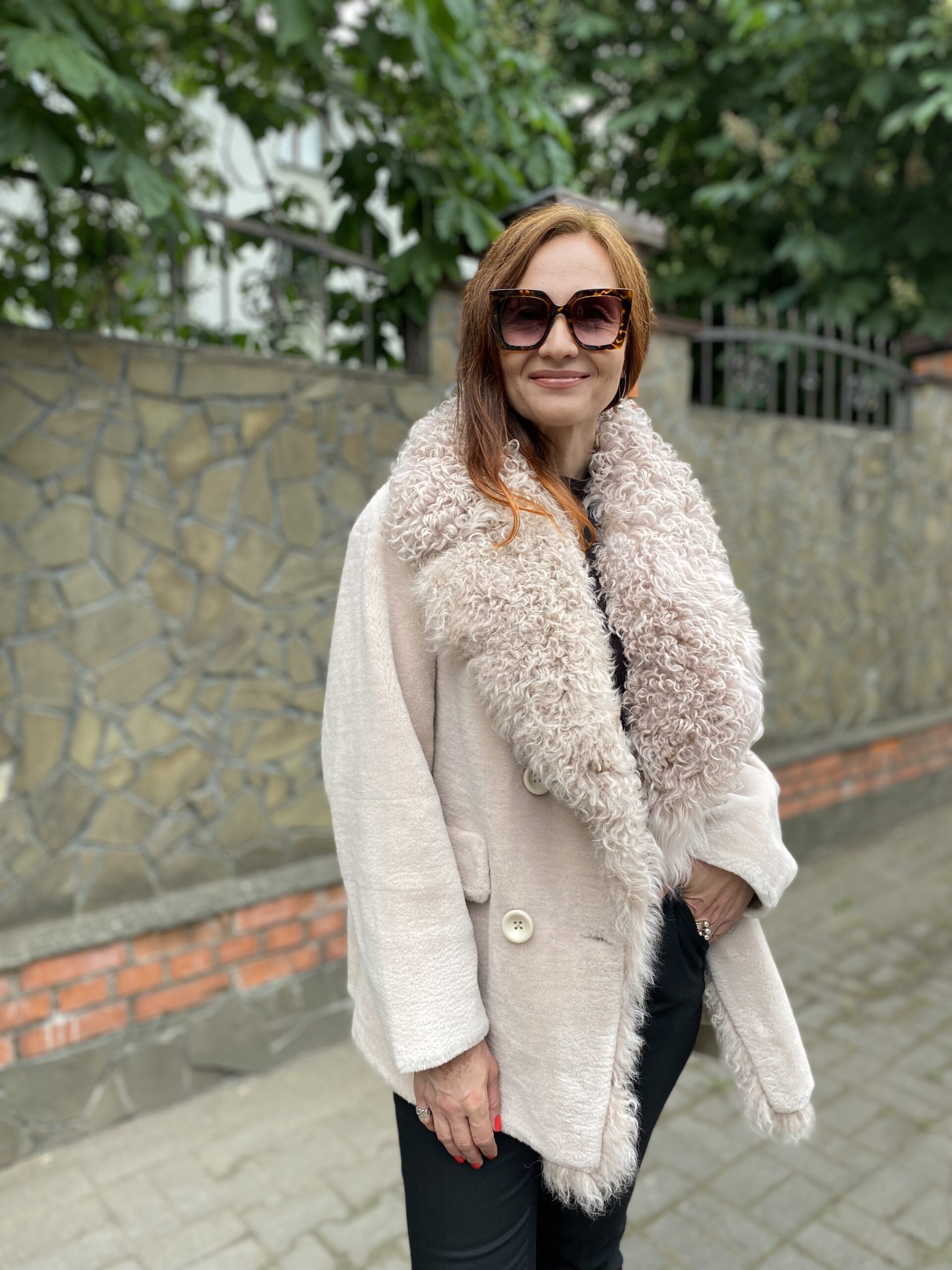 Изделие из 100% натуральной овечьей шерсти с эффектным английским воротником из натурального козлика 🫶