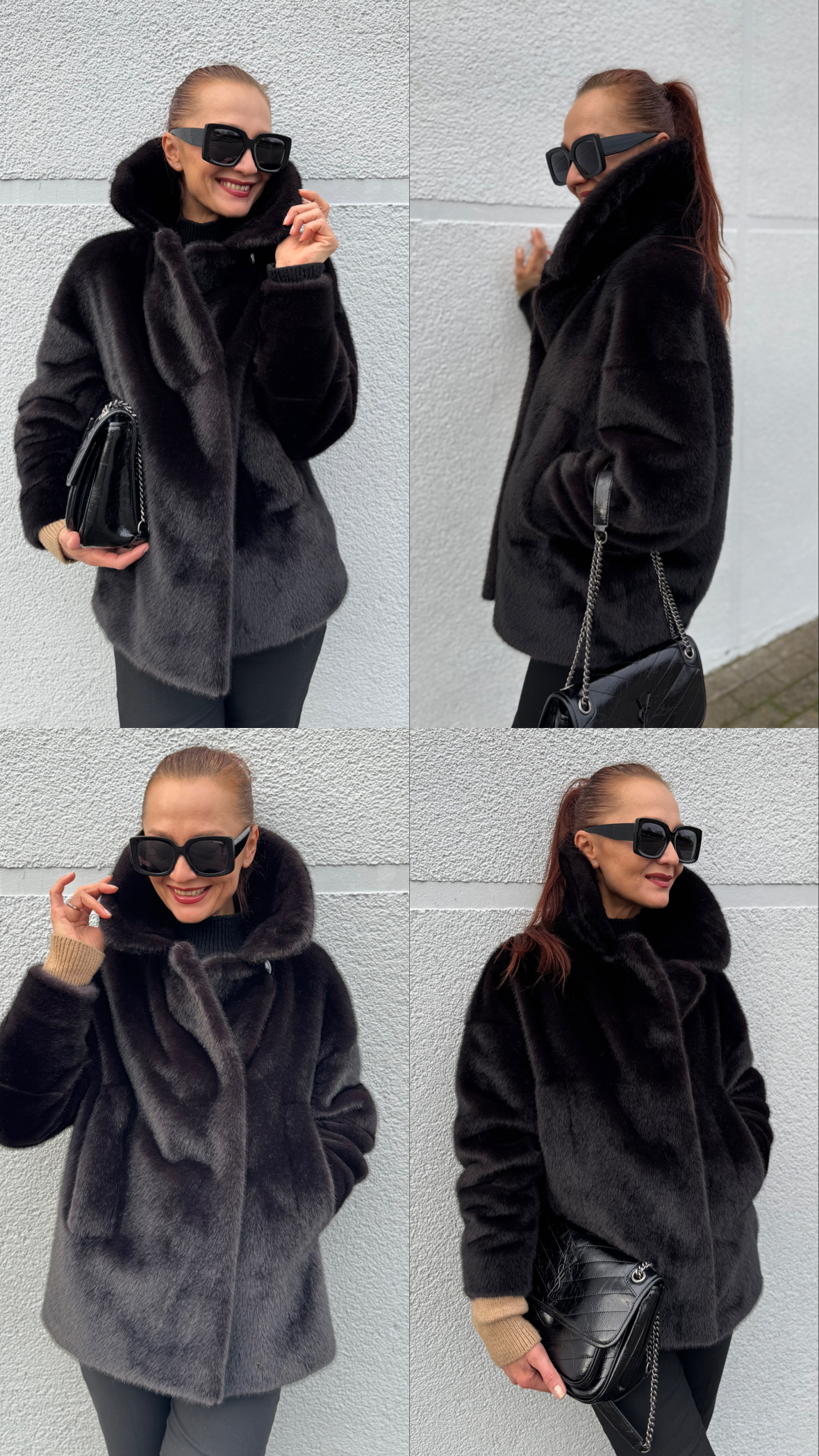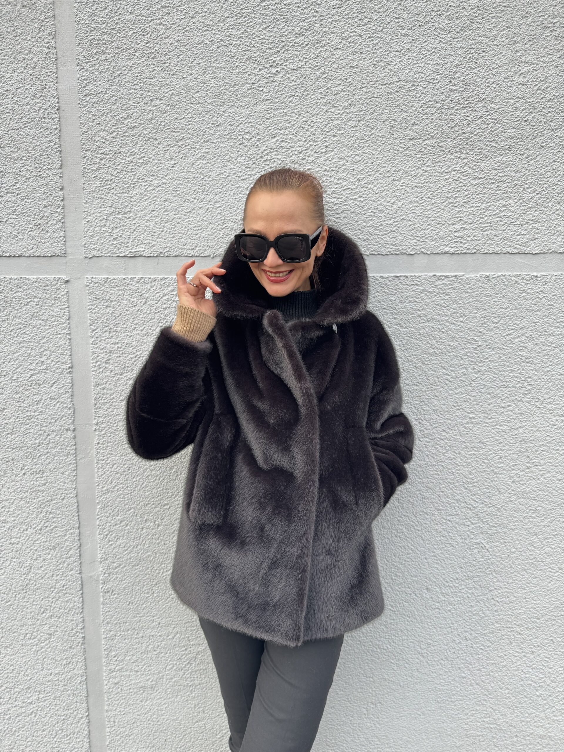 Куртка женская экомех, фактура норка, Модель 26046, цвет Скан-браун