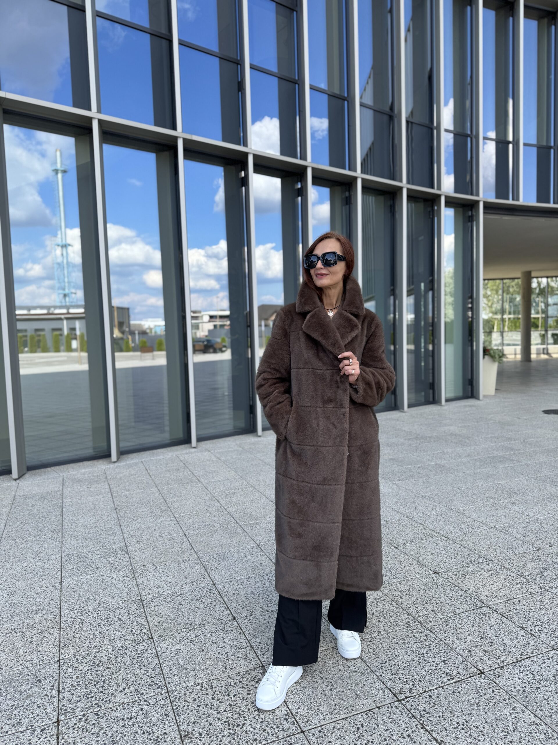 Пальто женское двухстороннее экомех, фактура норка, Модель 69613-2, цвет Шоколад