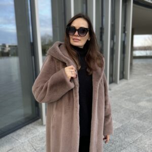 Уютная шуба из экомеха с просторным капюшоном актуальна в любую зимнюю погоду.   Цвет: Капучино Длина: 105 см. Фактура экомеха: норка Состав: 100% полиэстер Утеплитель Состав подкладочной ткани: 100% полиэстер Страна производства: Россия