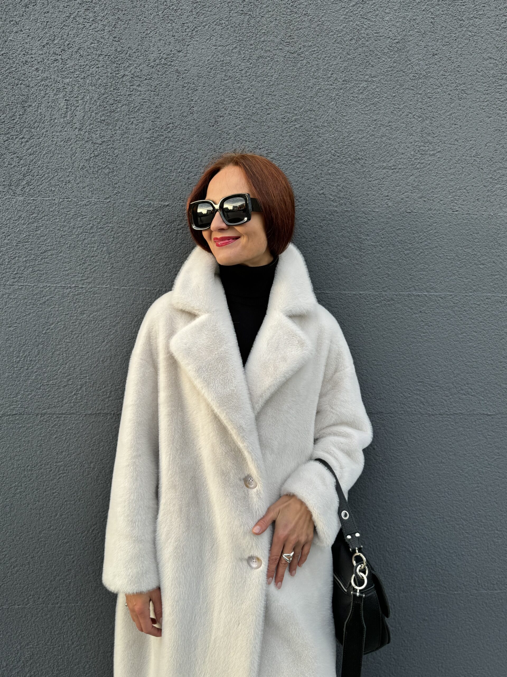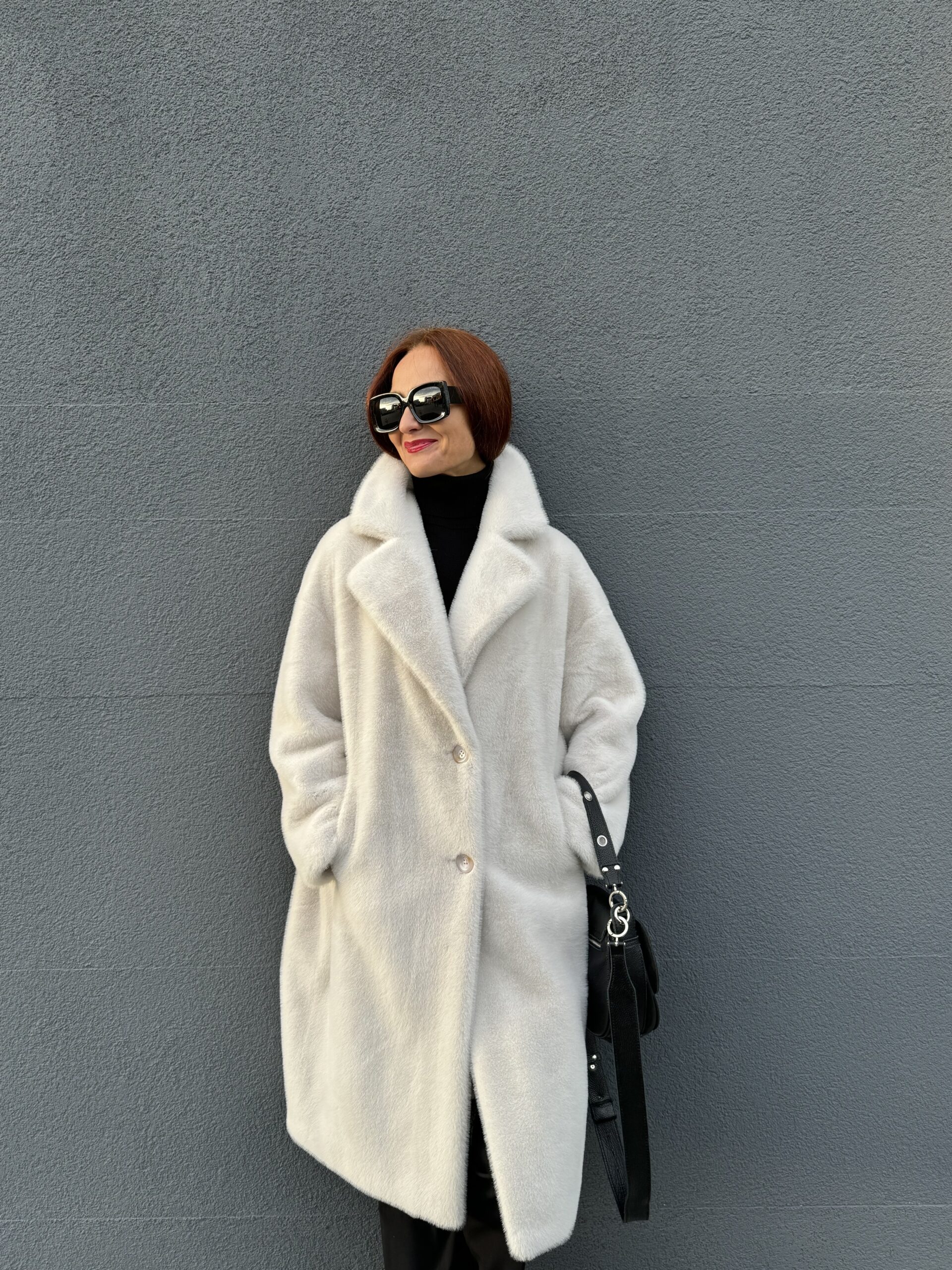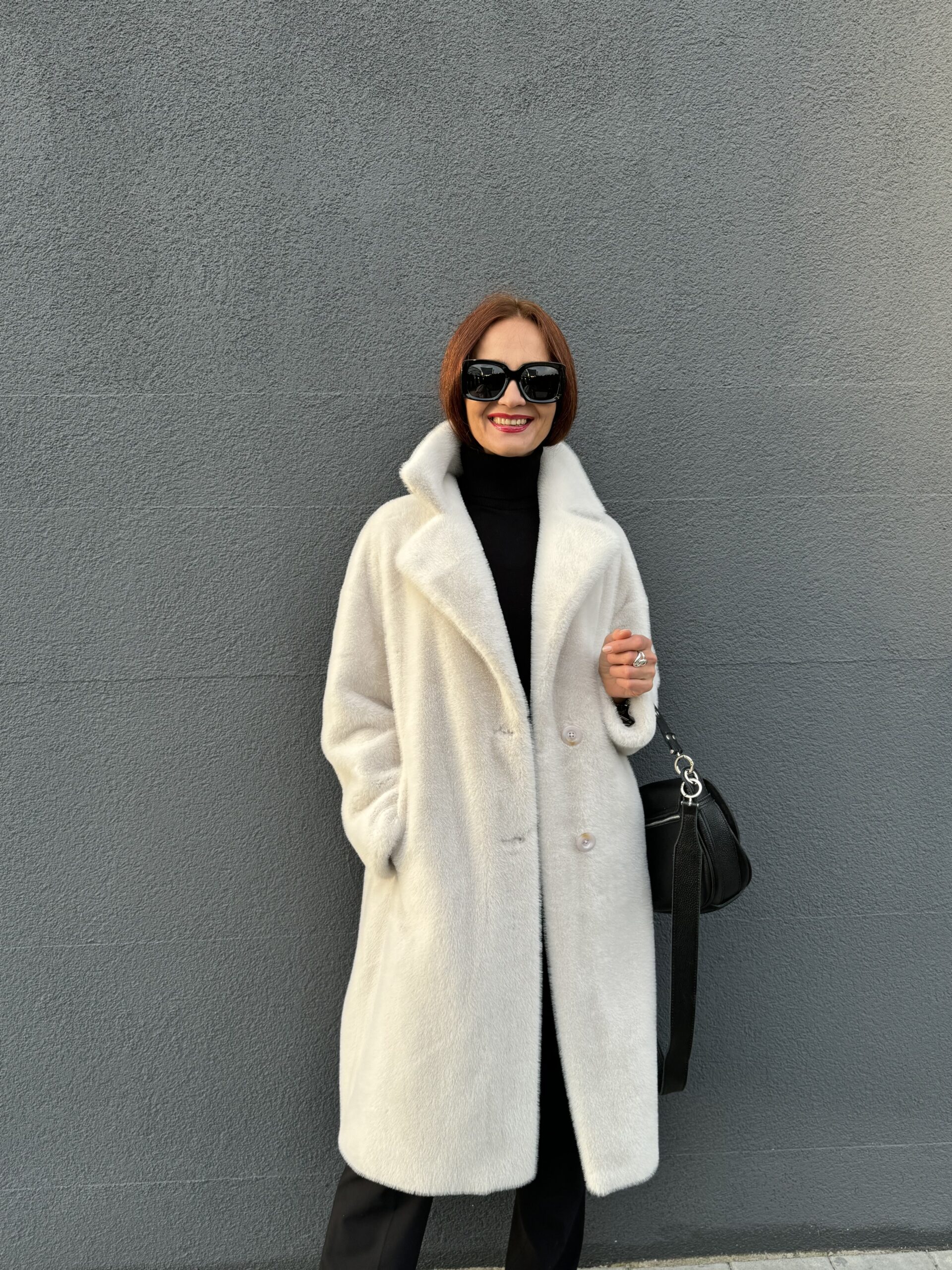 Шубу в жемчужном цвете из экомеха носим в любую погоду, не бережем, потому что уход проще, чем Вы думаете 😊
