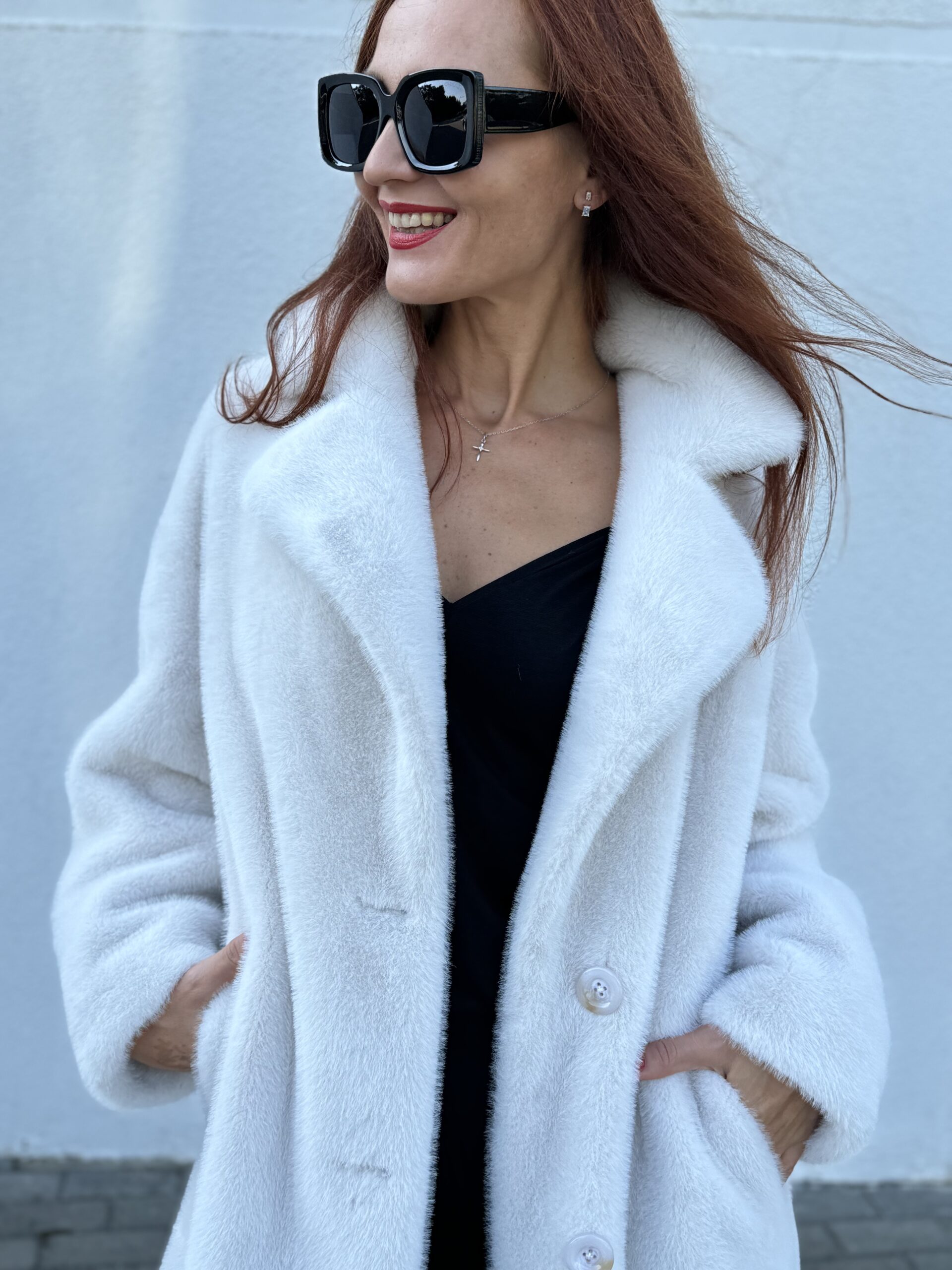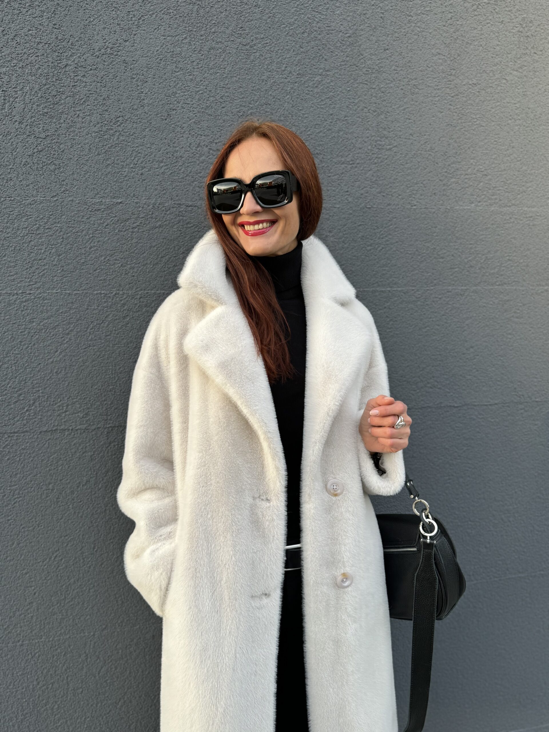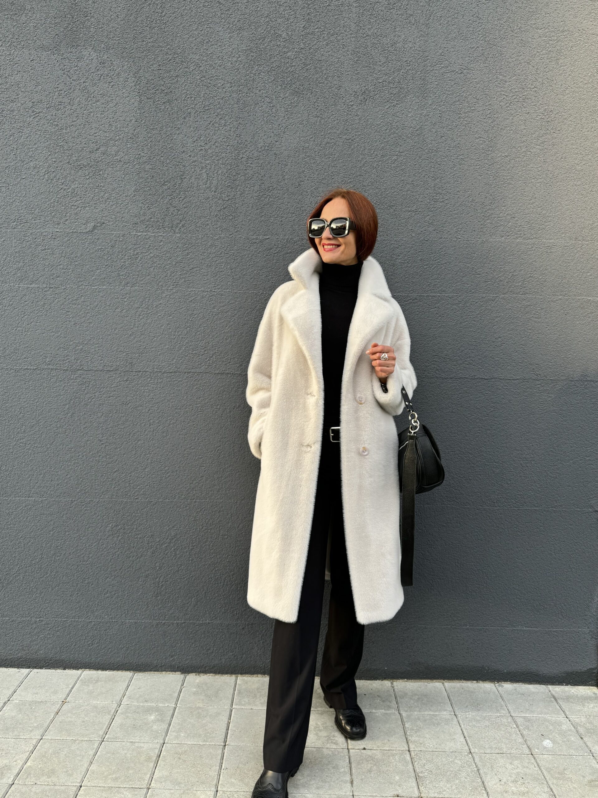Шубу в жемчужном цвете из экомеха носим в любую погоду, не бережем, потому что уход проще, чем Вы думаете 😊